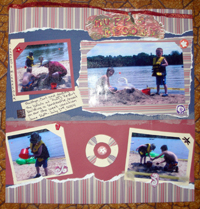 I can't seem to have a layout without bling of some sort I added a beaded blue on white strip to the top and bottom of the border. Again, very simple but meaningful. Here is the entire layout, Love it!!!